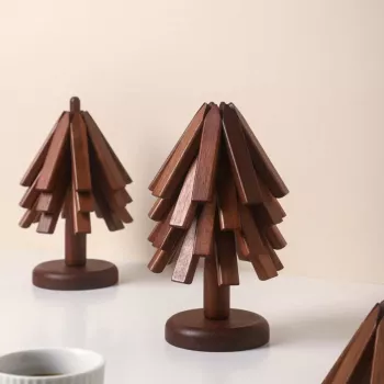 Wooden Tree Shape Trivet Coaster Set with Stand – 3/4pcs Heat-Resistant Decor